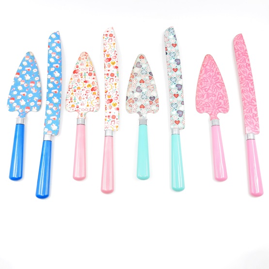 İki parçadan oluşan pasta bıçak seti renk ve vintage desenleri ile sunumlarınıza şıklık katacak ve pastalarınızın görünümünü bozmadan dilimleyip ikram etmenize kollaylık sağlayacaktır.